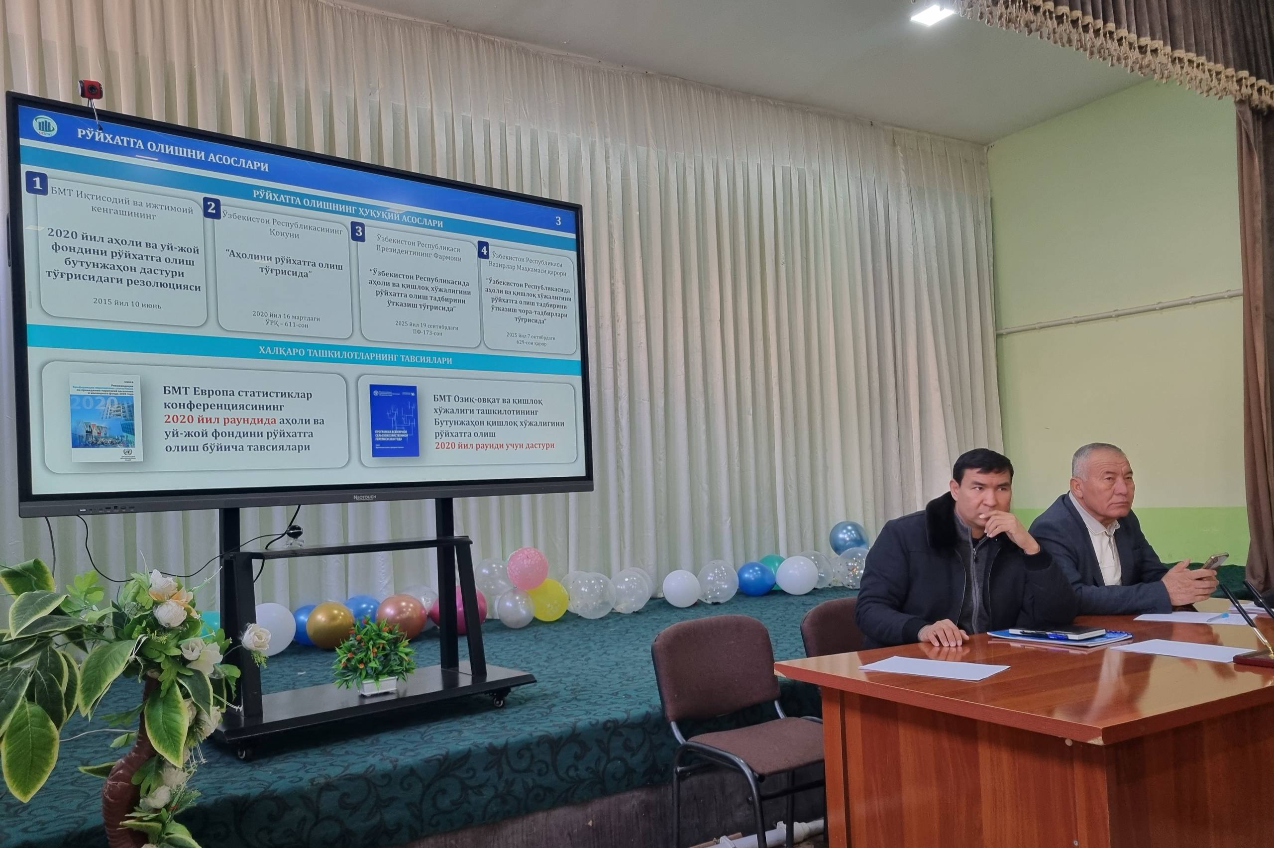 Seminar davomida ishtirokchilarga roʻyxatga olish tadbirlarini samarali va sifatli tashkil etish, aholi xabardorligini oshirish, har bir xonadonga yetib borish hamda jarayonni belgilangan tartib va muddatlarda amalga oshirish muhimligi alohida taʼkidlandi.