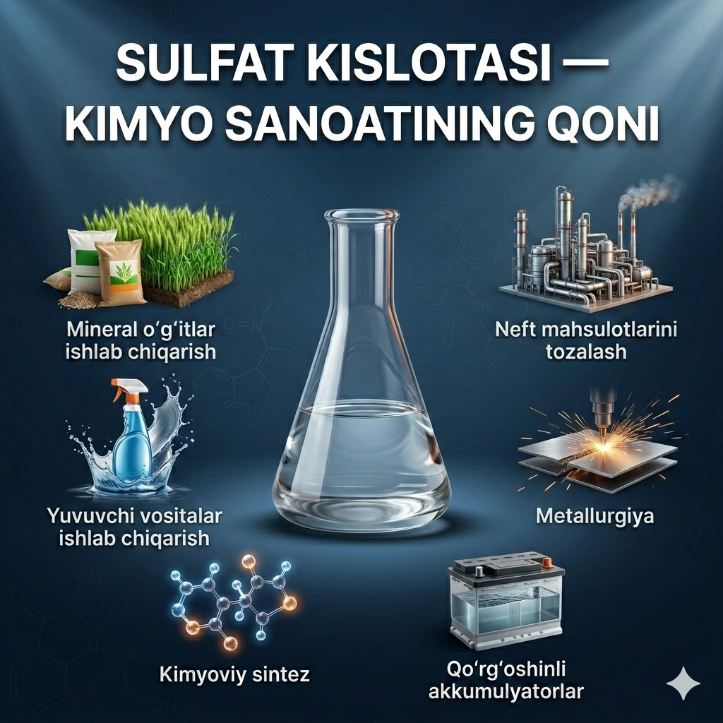Sulfat kislotasi — “kimyo sanoatining qoni” hisoblanadi. U shunchalik muhimki, mamlakatda uning isteʼmol hajmi koʻpincha iqtisodiyot qudratining koʻrsatkichi sifatida baholanadi.