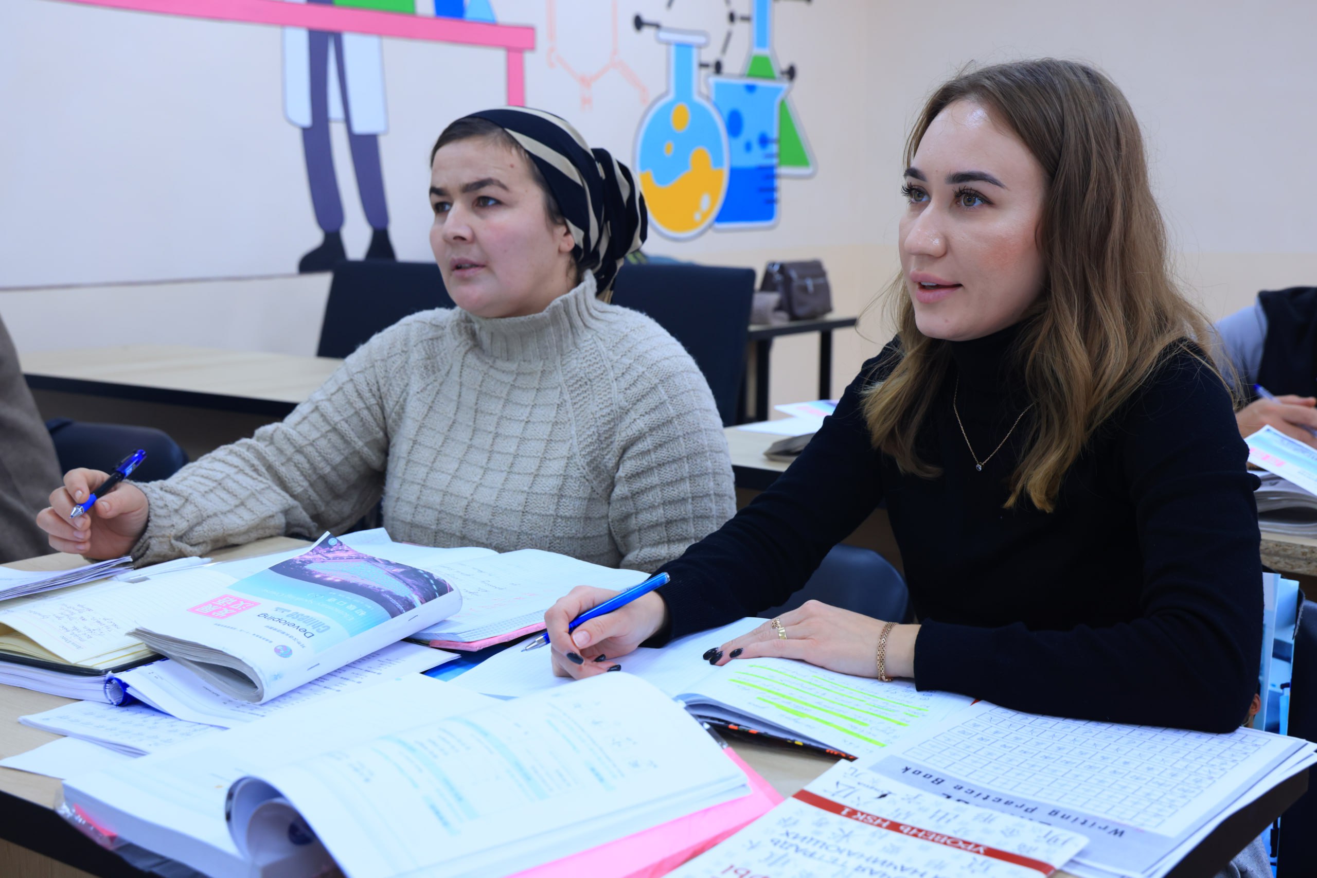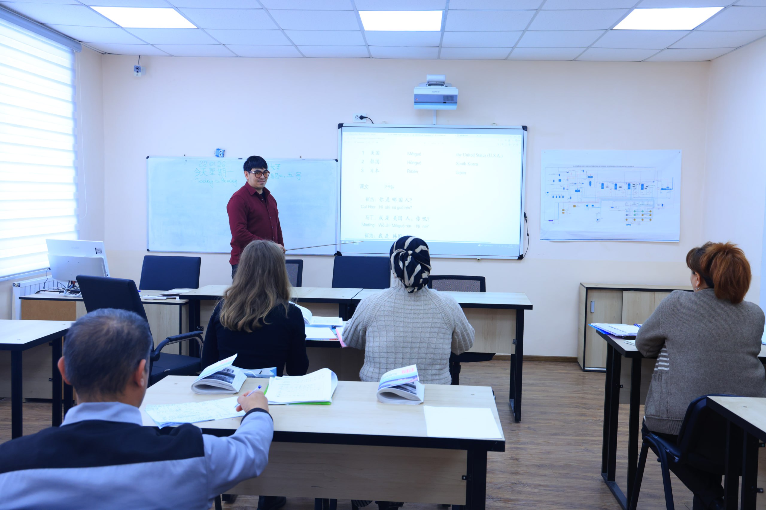 Haftaning dushanba va chorshanba kunlari soat 13:00 dan 17:00 ga qadar ingliz tili, seshanba hamda payshanba kunlari esa soat 13:00 dan 17:00 gacha xitoy tillari bo‘yicha dars o‘tilmoqda.