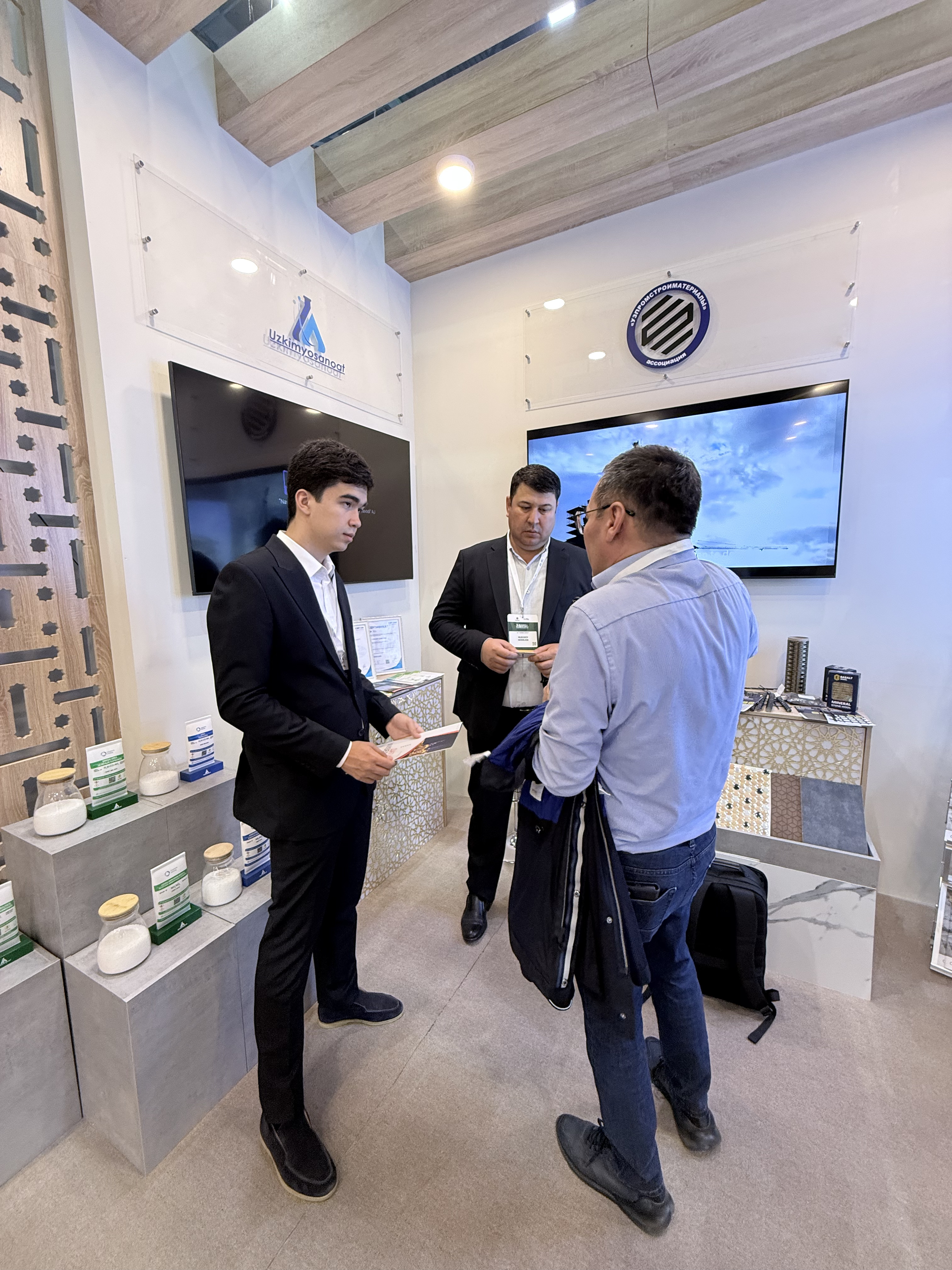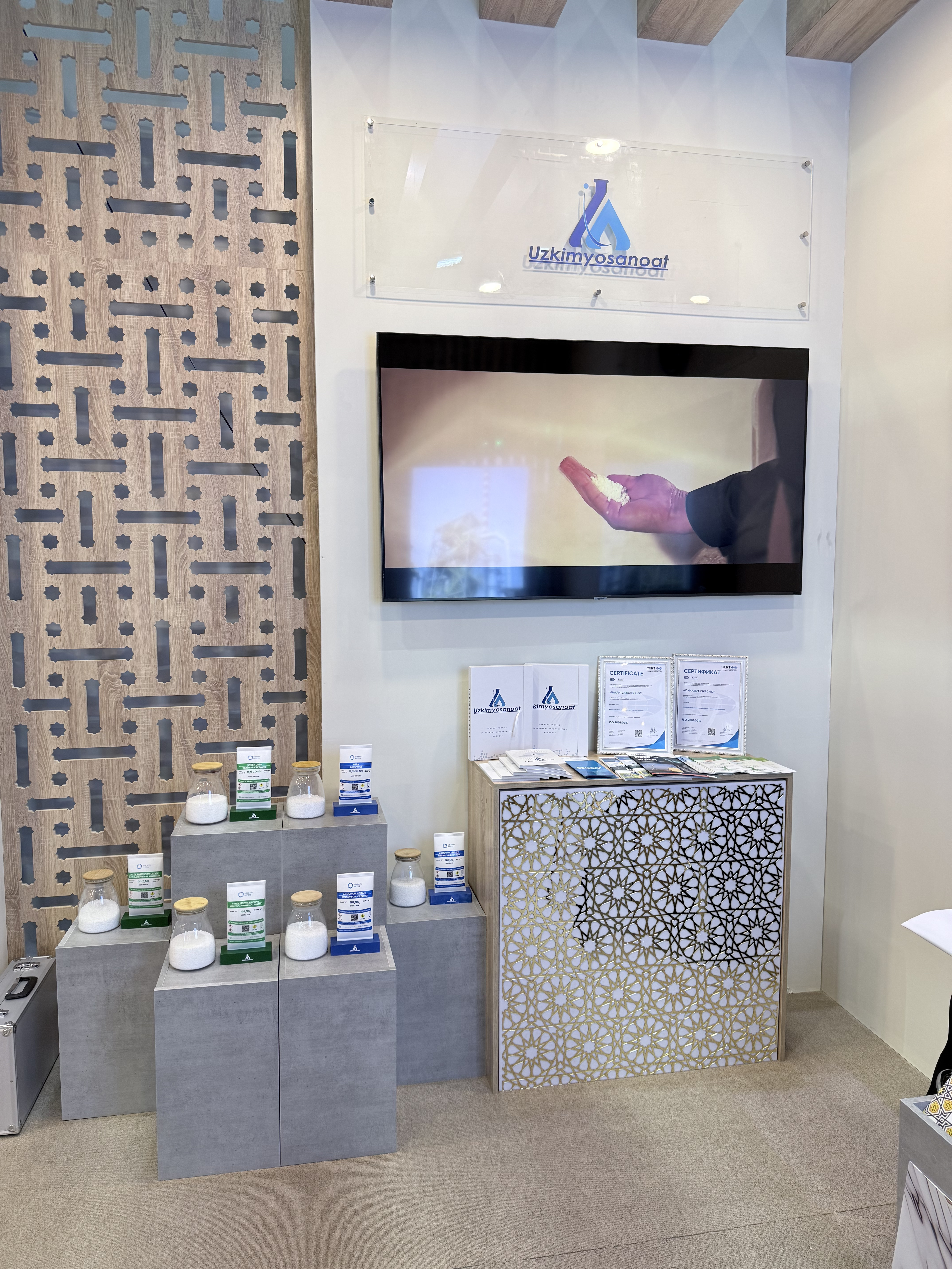 Jumladan, jamiyatning xalqaro maydondagi nufuzini tasdiqlovchi S&P Global tomonidan berilgan ESG reytingiga oid maʼlumotlar ham namoyish etilmoqda.Shuningdek, stendda Toshkent viloyatining Chirchiq shahrida amalga oshirilayotgan strategik ahamiyatga ega loyihalarga ham alohida urgʻu berilgan. Ular orasida ACWA Power bilan hamkorlikda tashkil etilgan “ACWA Power UKS Green H2” qoʻshma korxonasi negizidagi yashil vodorod ishlab chiqarish va uni qayta ishlash orqali yashil mineral oʻgʻitlar tayyorlash tashabbuslari mavjud.