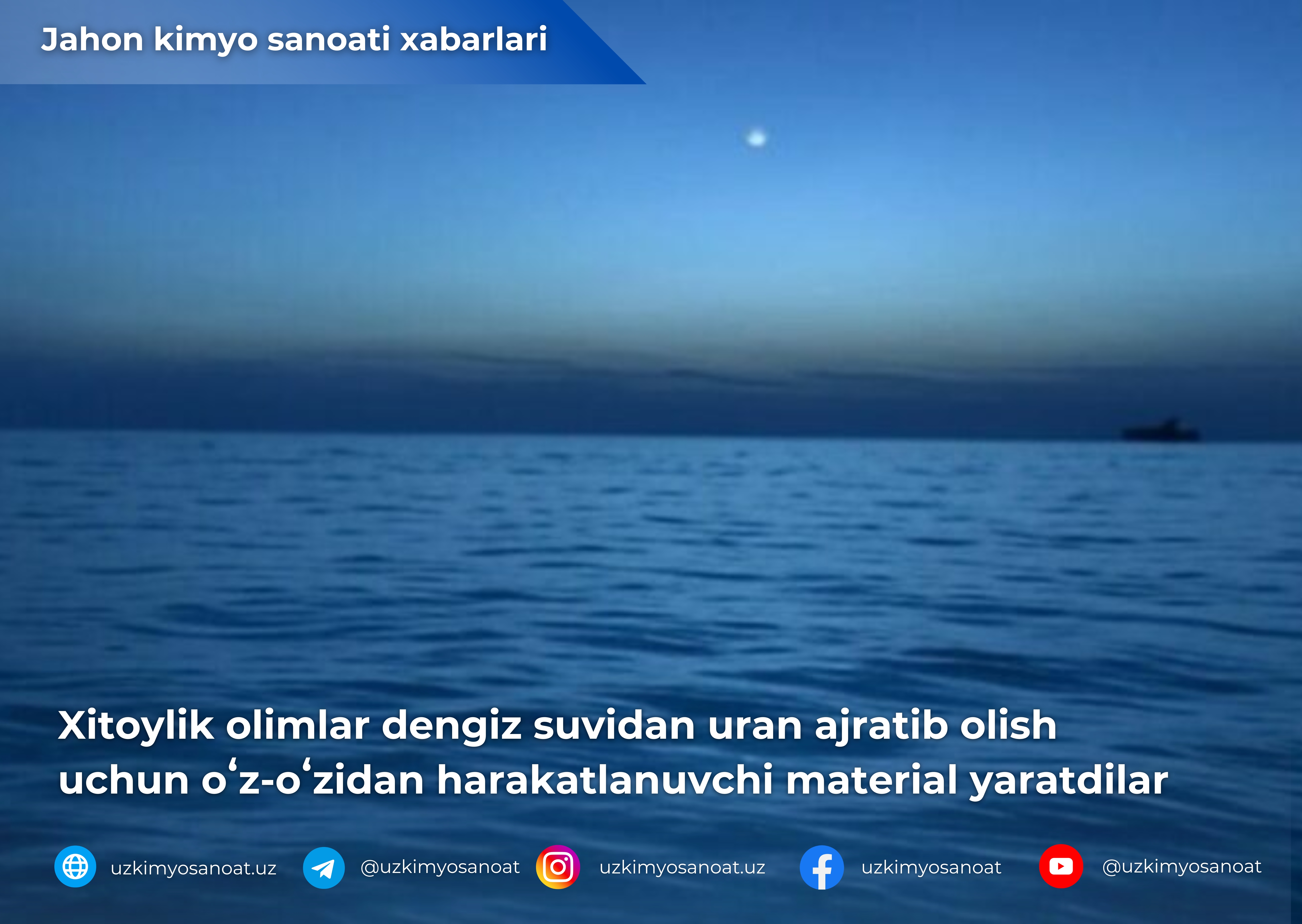 Xitoy tadqiqotchilari suvda mustaqil harakatlana oladigan va yorugʻlik energiyasidan foydalanib uranni ajratib oladigan yangi turdagi materialni ishlab chiqdilar.