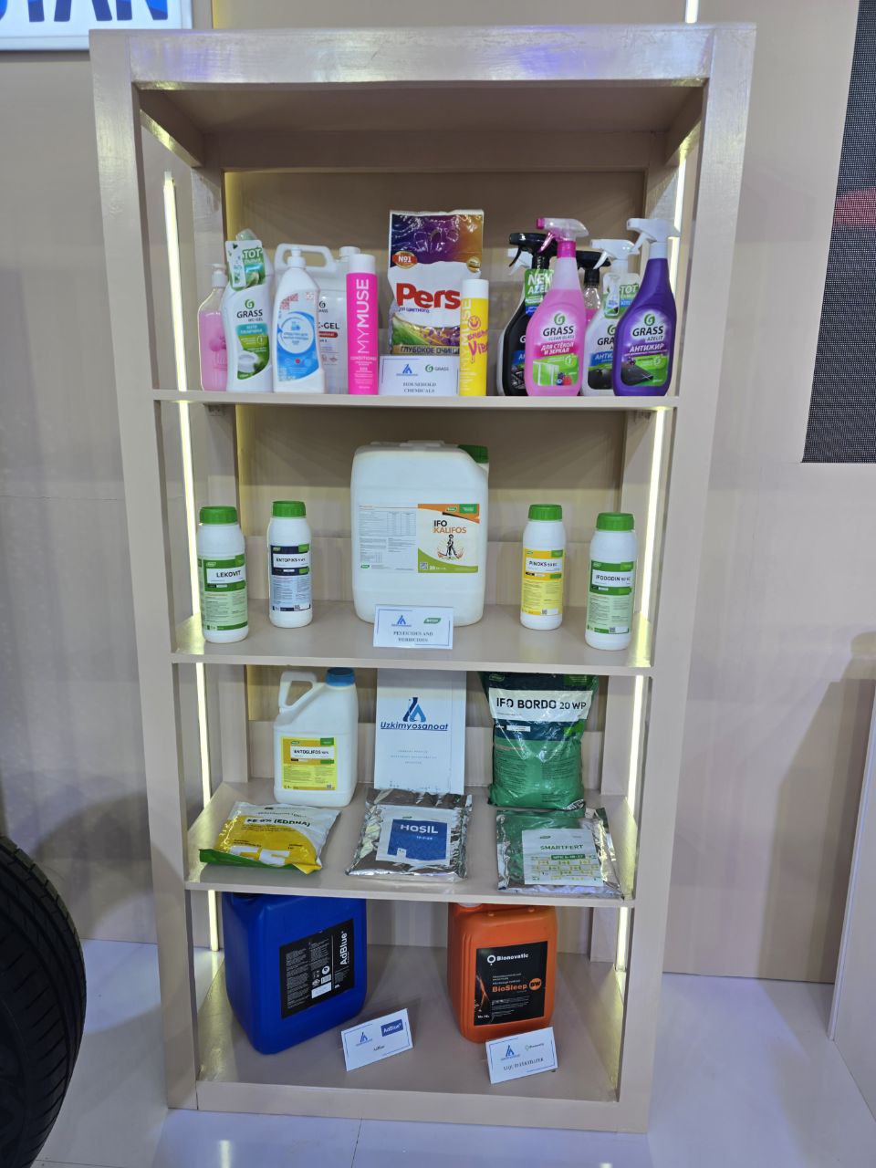 В экспозиции выставки также представлены изделия, произведённые на предприятиях системы акционерного общества «Узкимёсаноат». Это способствует расширению экспортного потенциала национальной химической промышленности и установлению новых партнёрских связей.