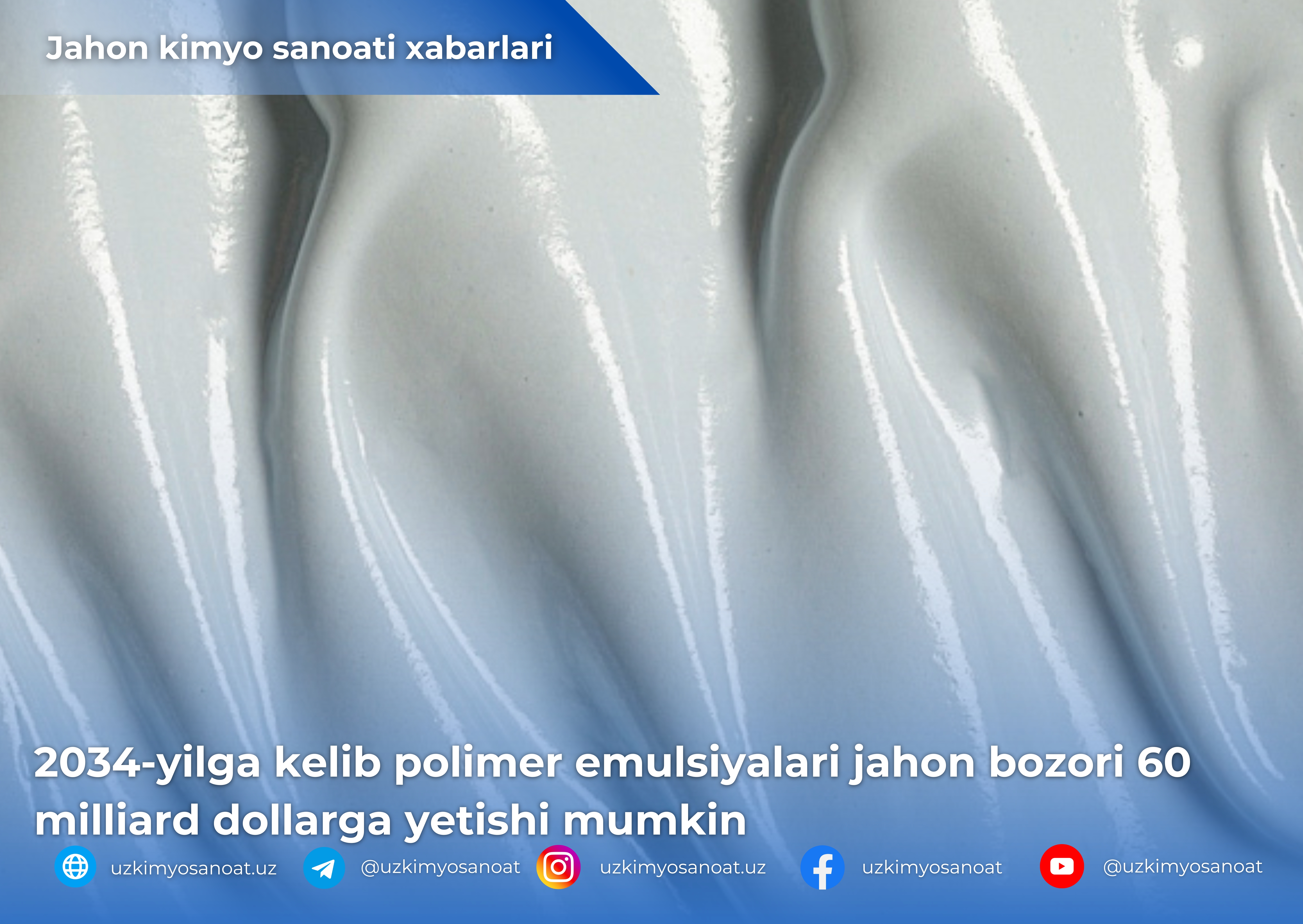 2034 йилга келиб полимер эмульсиялари жаҳон бозори 60 миллиард долларга етиши мумкин